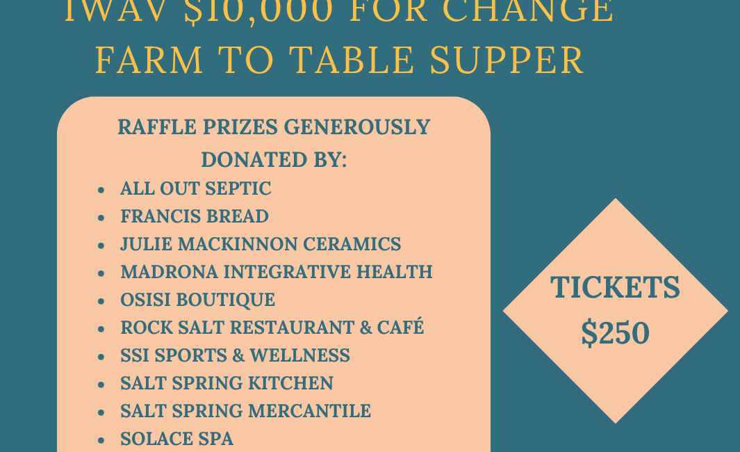 Join Us Oct 7 at Stowel Lake Farm – IWAV’s $10,000 for Change Supper